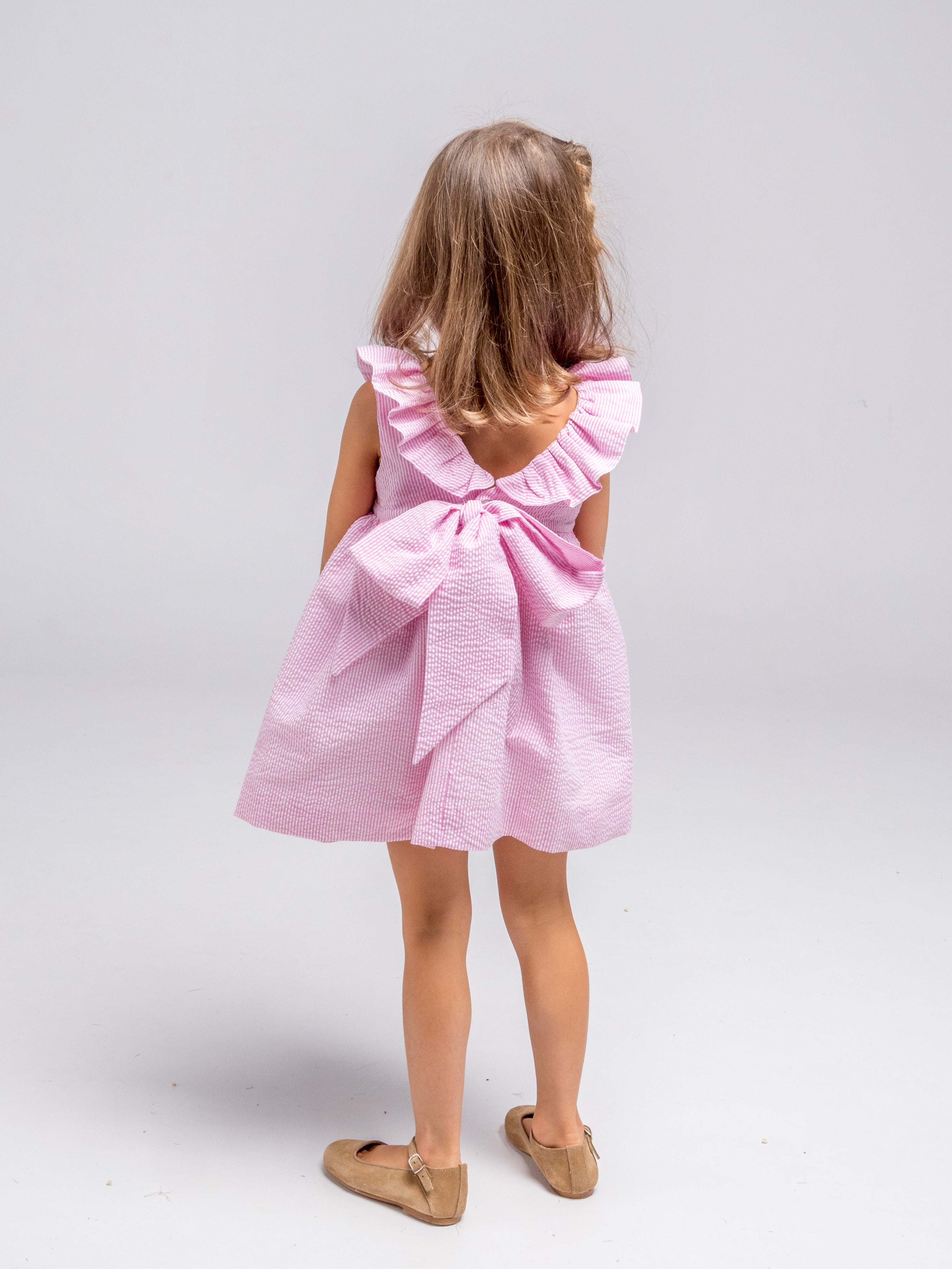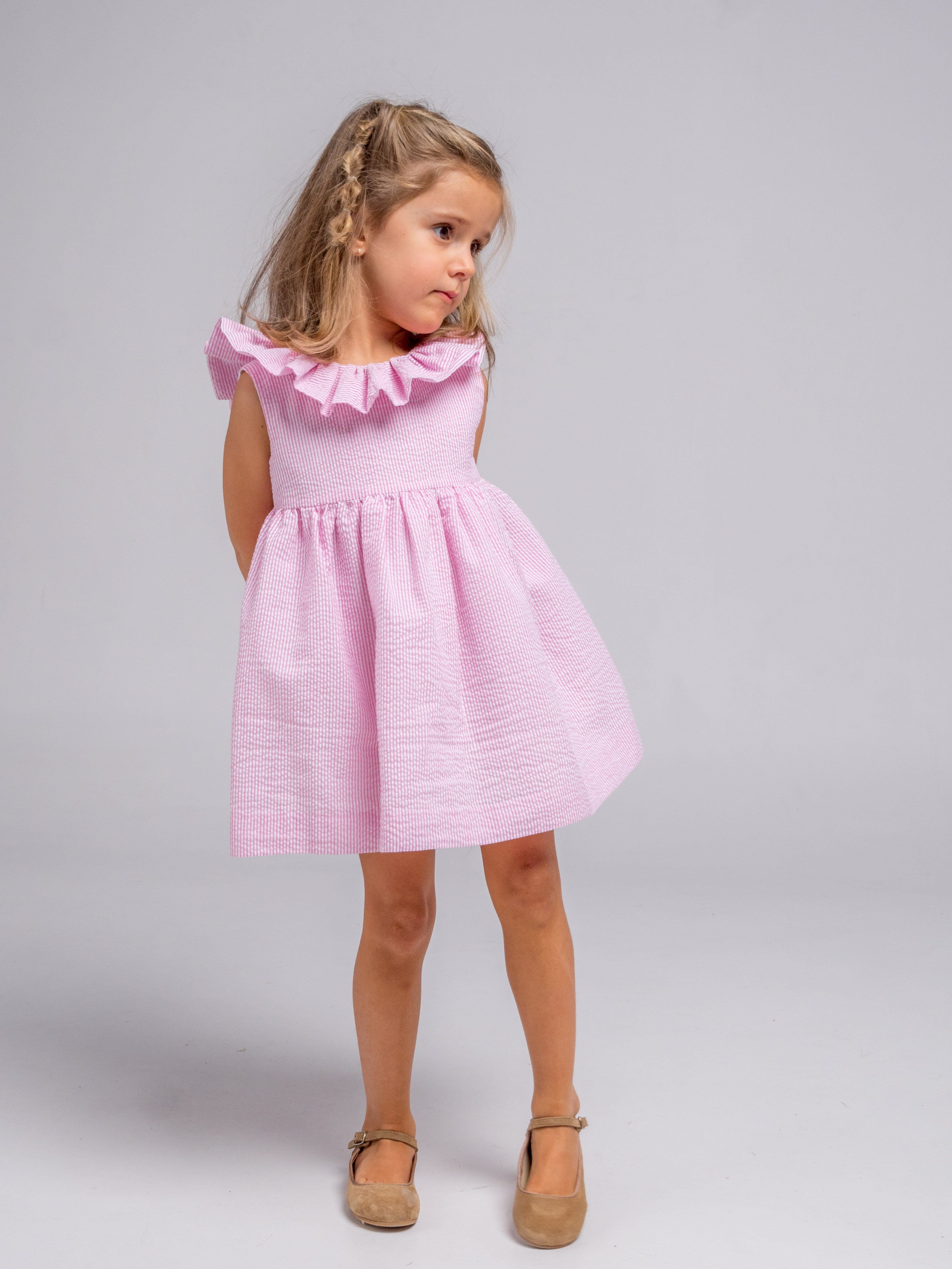 Vestido rayas fresa