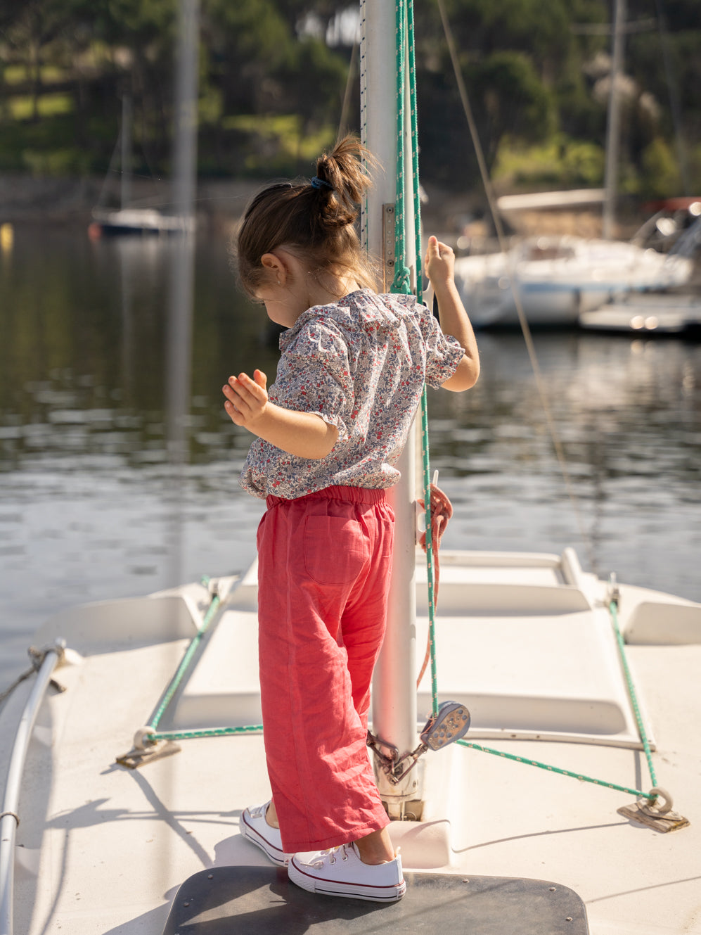 Pantalón largo lino fresa