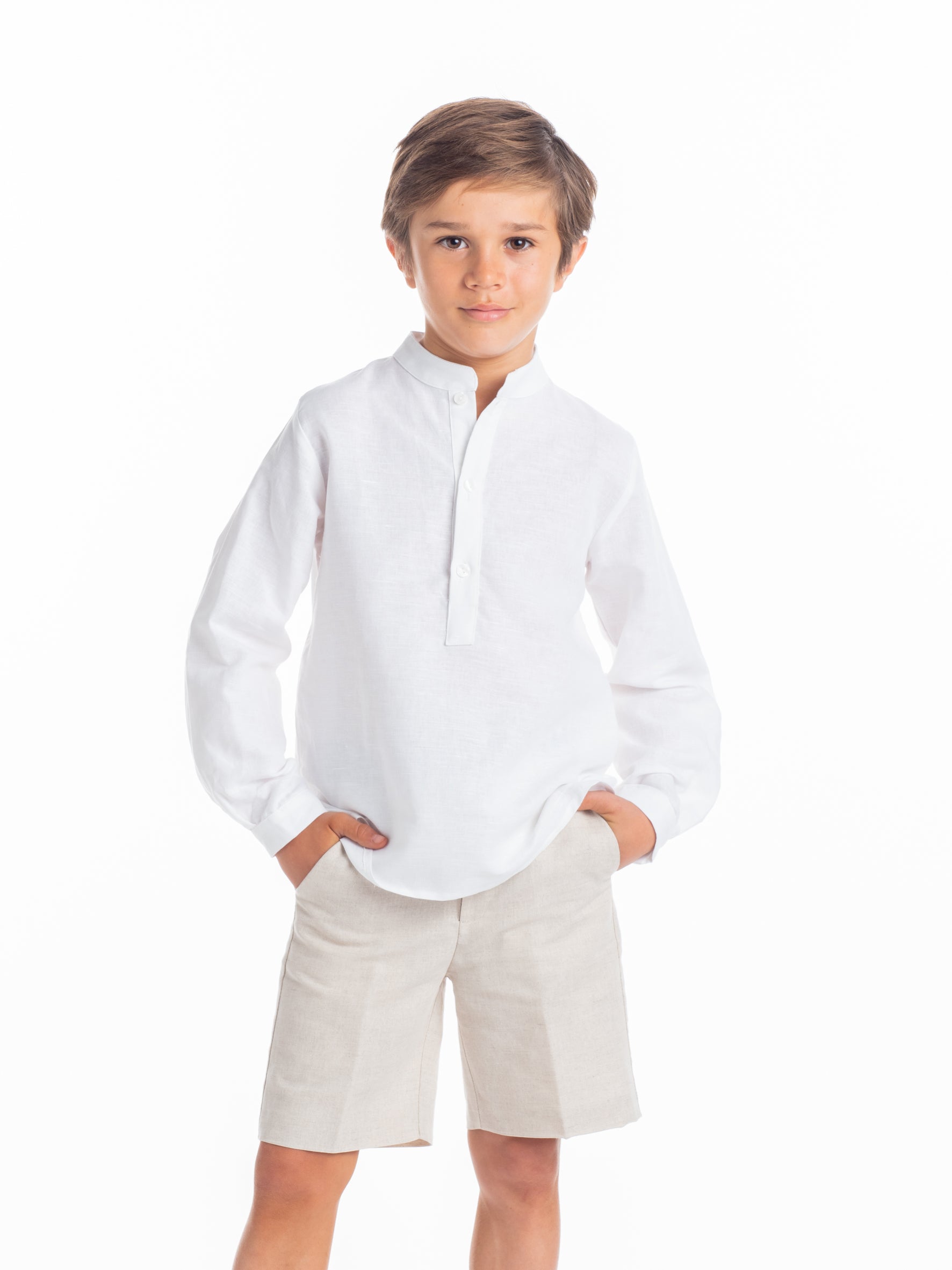 Chemise mao en lin blanc